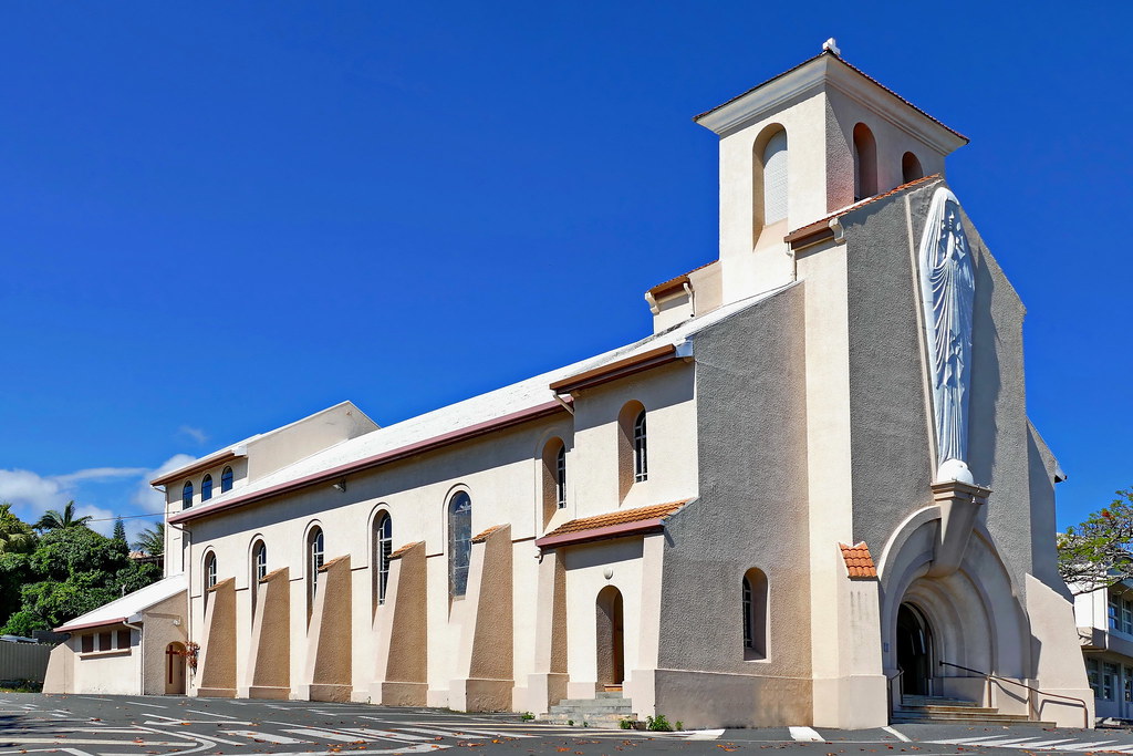 A l’extérieur trône une grande statue de Notre Dame des flots.