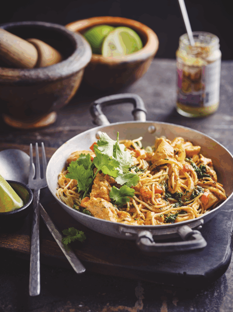 Conseil de présentation : Mettre les pâtes dans une assiette, répartir la sauce dessus et décorer avec un peu de coriandre.