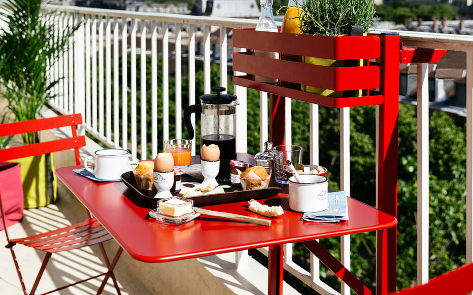 - Un espace dînatoire avec une table et des chaises afin de pouvoir prendre l’apéro ou manger dehors dès qu’il y a du soleil.