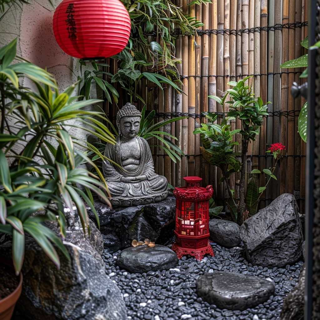 On peut y mettre des lanternes, des petites statues de lion, mais aussi divers récipients.