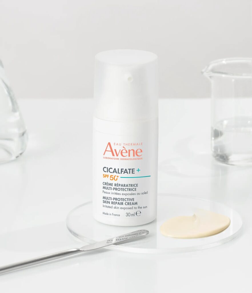 Mon produit coup de coeur est la crème réparatrice Cicalfate + SPF 50 multi-protectrice d’Avene vendue au prix de 16,90 € en pharmacie.
