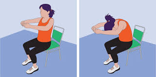 • S’asseoir bien droit, entrelacer les doigts et tourner les paumes vers le haut.