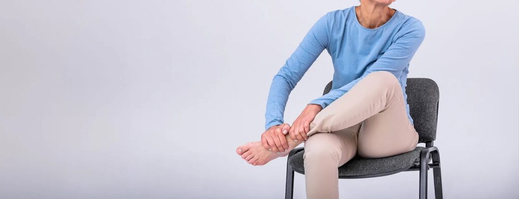 • Se tenir bien droit et poser vos mains à plat, l’une sur le genou, l’autre sur la cheville.