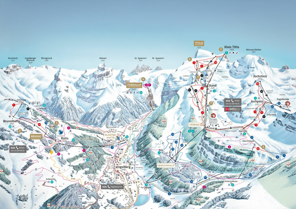 Le domaine d’Engelberg-Titlis, qui culmine à plus de 3 000 mètres d’altitude, offre une grande diversité de pistes pour tous les niveaux, y compris des zones de freeride, des parcs pour snowboarders et des pistes de ski de fond.