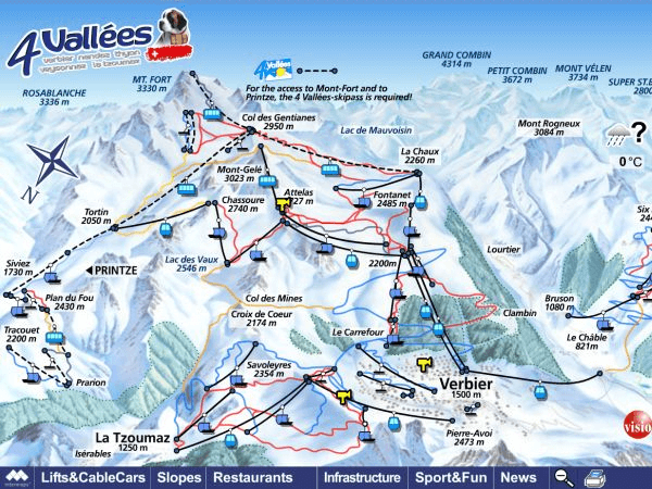 Elle fait partie du vaste domaine des 4 Vallées et s’étend sur 412 hectares, offrant une altitude allant jusqu’à 3.330 m et un enneigement moyen annuel de 475 cm.