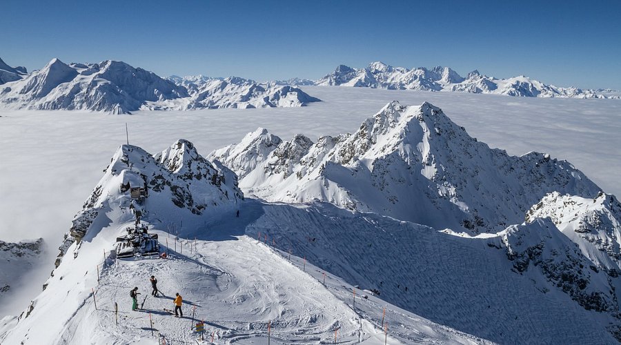 Le sommet du Mont-Fort, à 3330 m, est un incontournable pour les skieurs experts cherchant une descente technique avec vue sur le massif du Mont-Blanc.