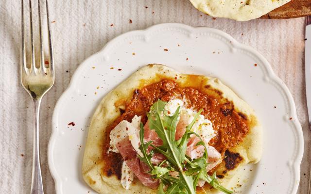 - Dans une poêle chauffée à sec, y faire dorer chaque piadina pendant 3 minutes de chaque côté jusqu’à ce que des bulles apparaissent.