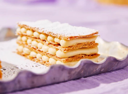 • Monter chaque tom-pouce en alternant une couche de pâte feuilletée et une couche de crème.